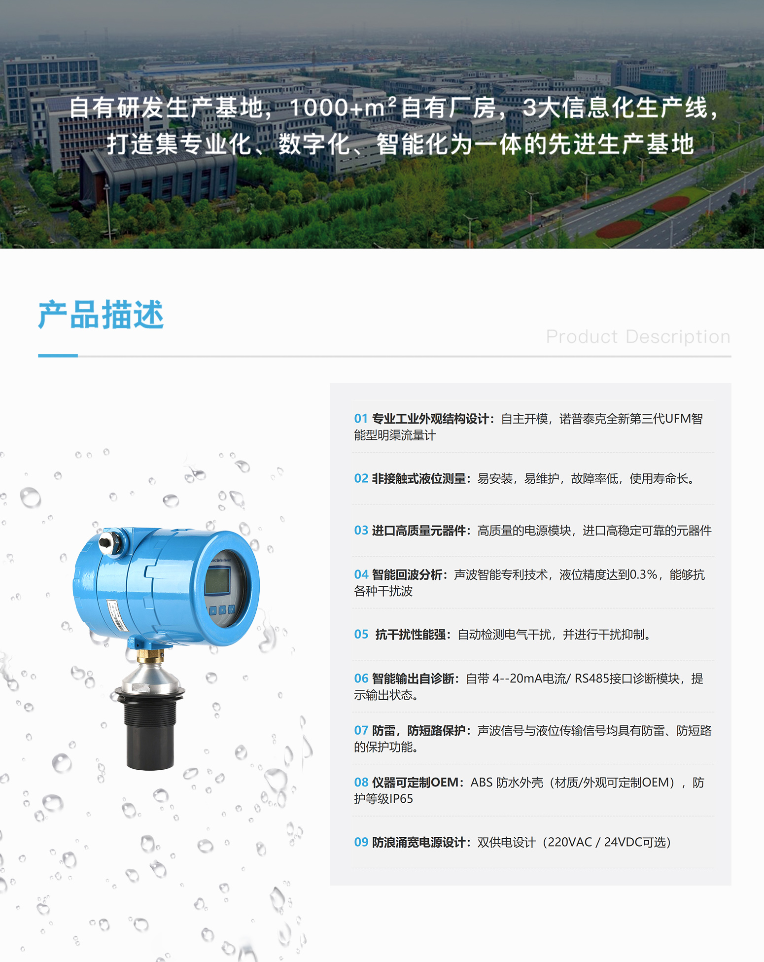 诺普泰克ULM-701A型一体式超声波液位计(测量液位/物位),采用超声波回波分析法工作原...