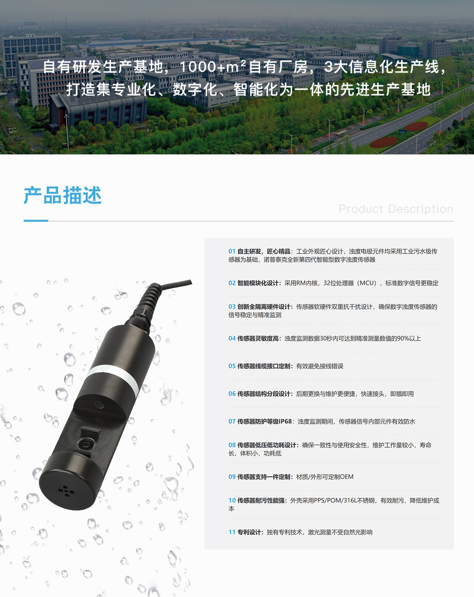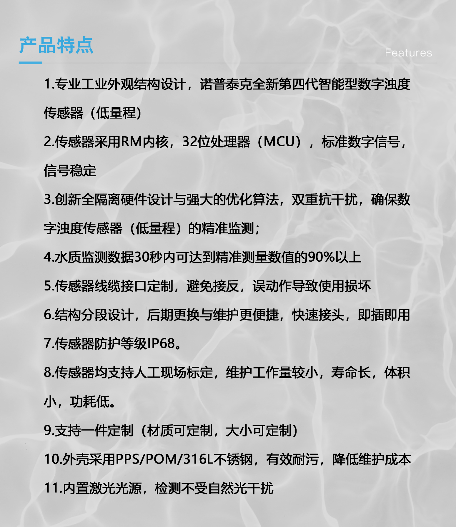 诺普泰克MTS-750H数字浊度传感器(高量程)采用我司浊度电极发明专利技术《采用激光调...