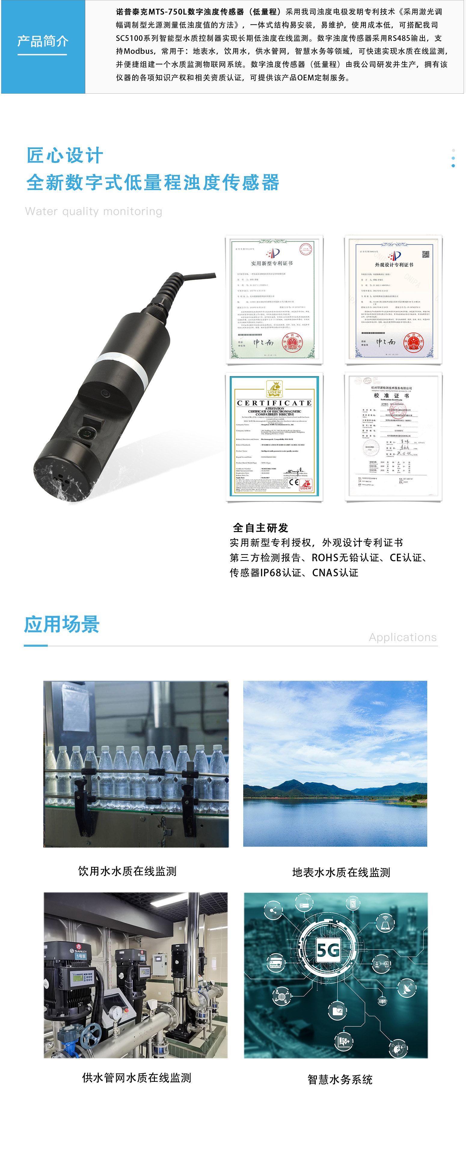 诺普泰克MTS-750L数字在线浊度计(低量程)采用我司在线浊度计发明专利技术《采用激光...